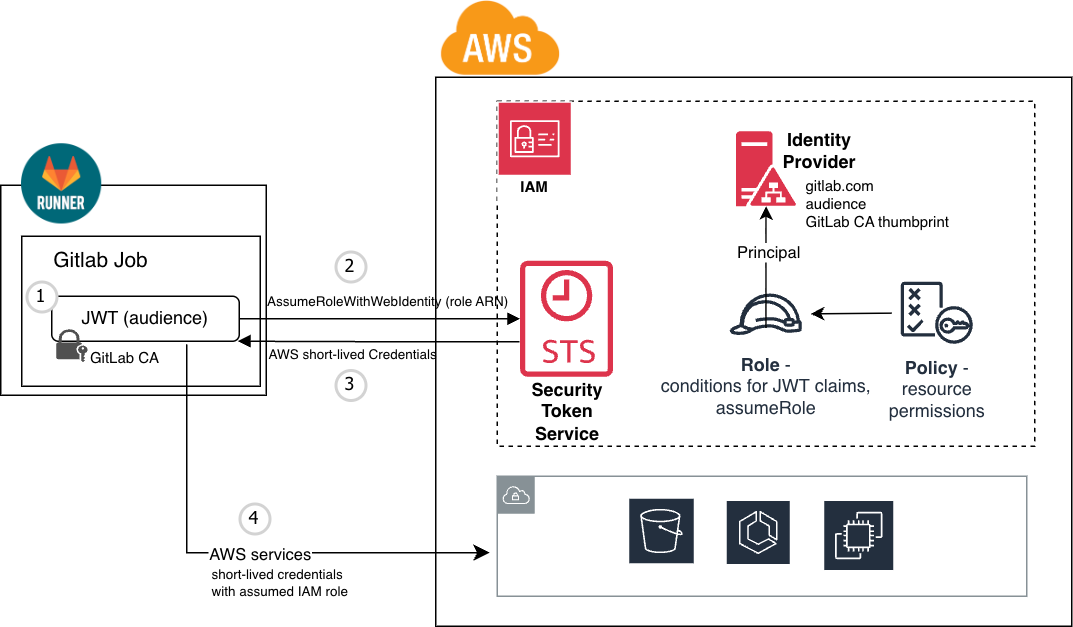 However, for those AWS calls to work you need to establish an IAM identity. In the past, you would have to rely on AWS access keys in CI/CD variables, or applying an IAM role to the compute of a self-managed GitLab Runner.